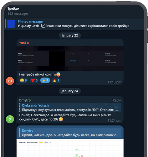 Трейди авторів каналу та інших учасників