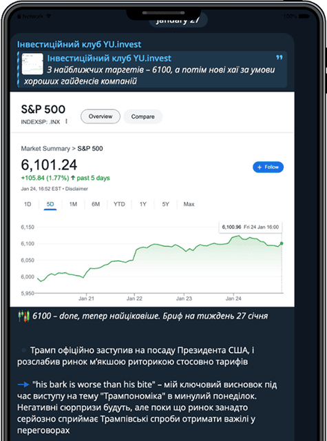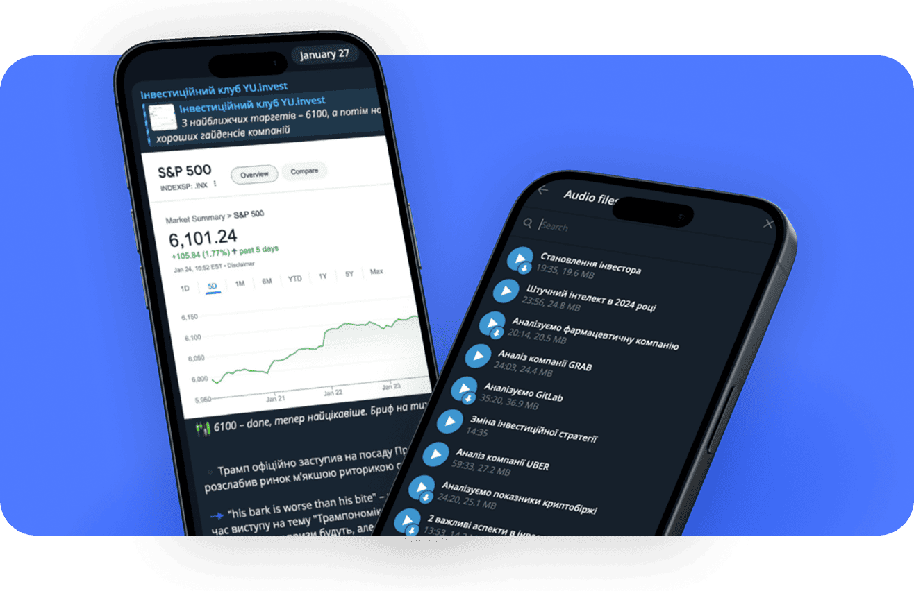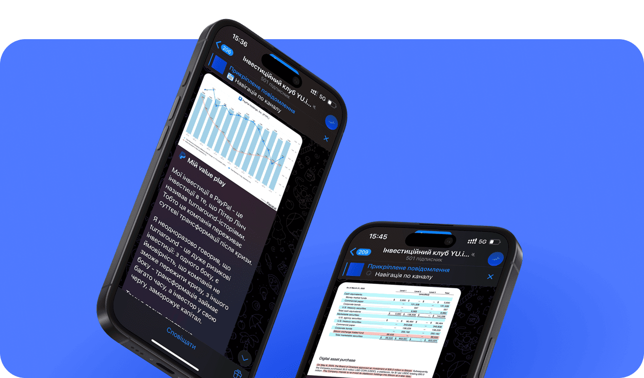 Завжди будьте у курсі того, що впливає на ваш портфель інвестора. Регулярно отримуйте аналітичну вичитку та огляди важливих подій, щоб приймати рішення та уникати помилок, зроблених на емоціях.